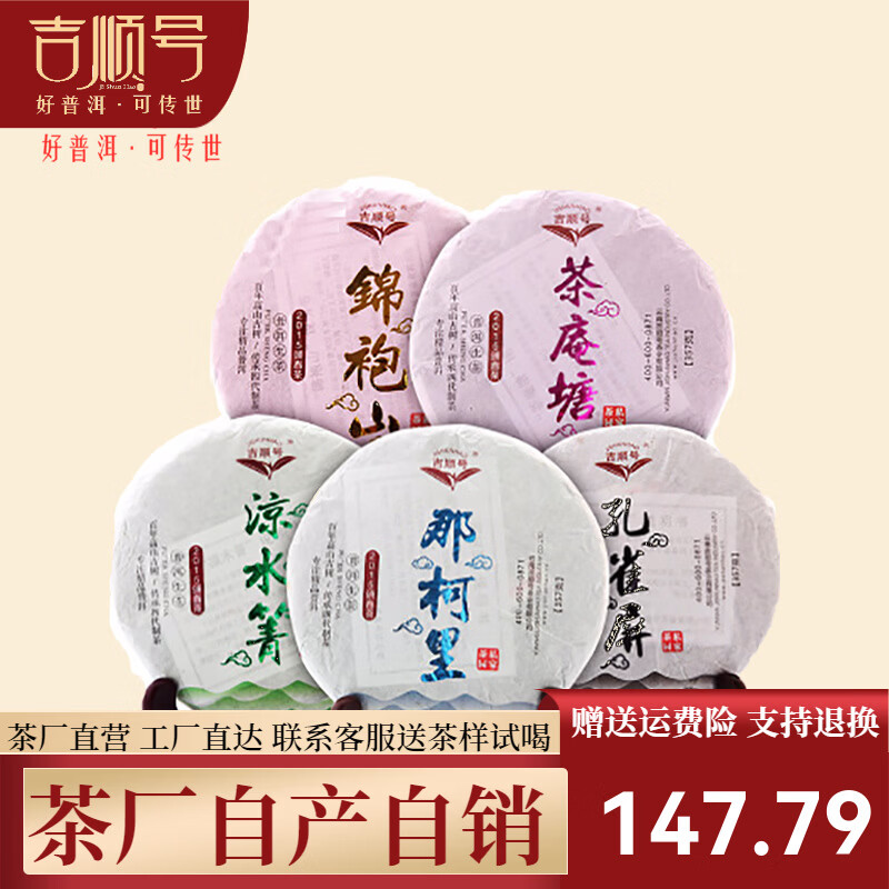 吉顺号中秋节日送礼礼盒私家茶园5饼套装云南普洱茶生茶饼357g*5饼/盒