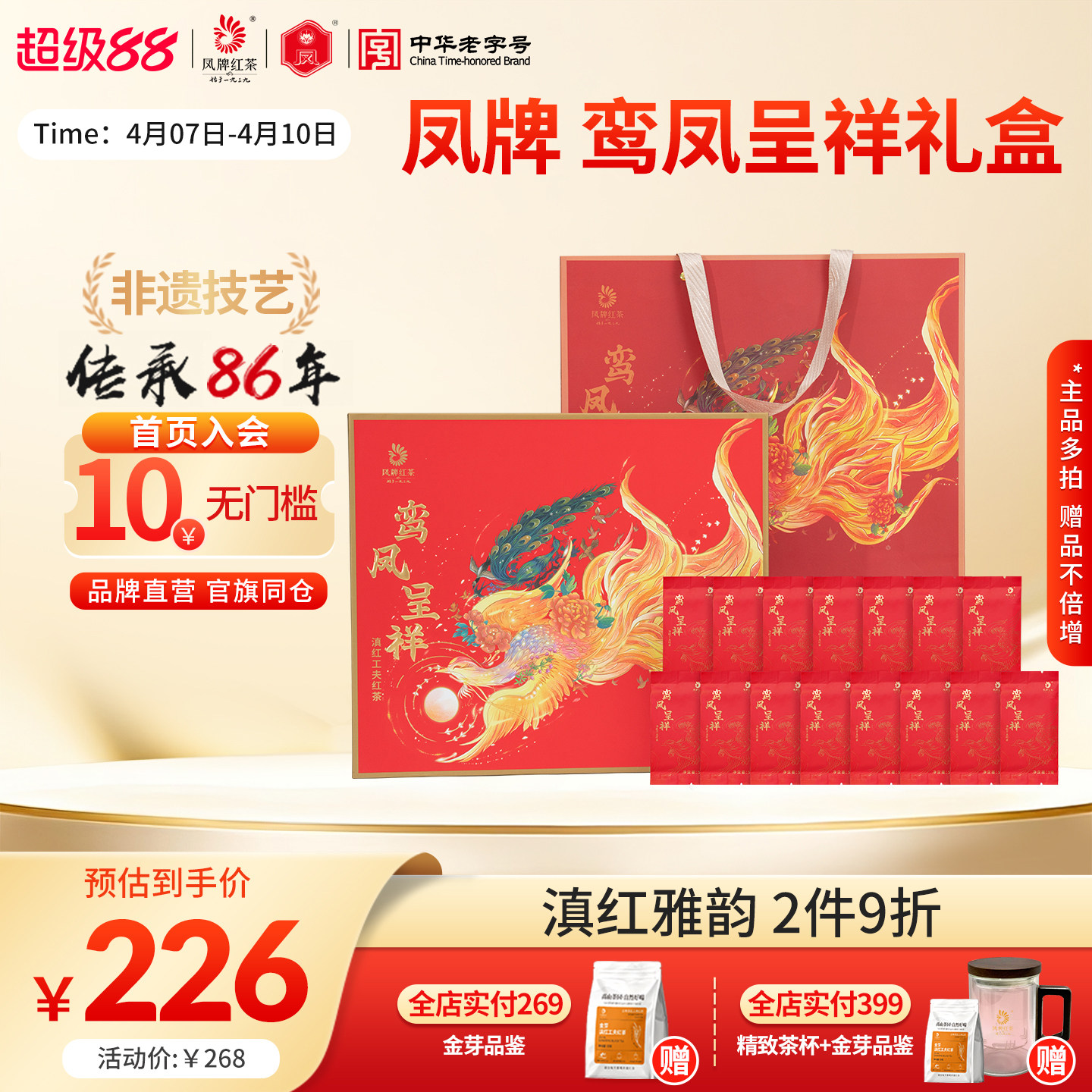 凤牌红茶礼盒鸾凤呈祥200g罐装老字号正宗滇红茶叶礼盒节日送礼