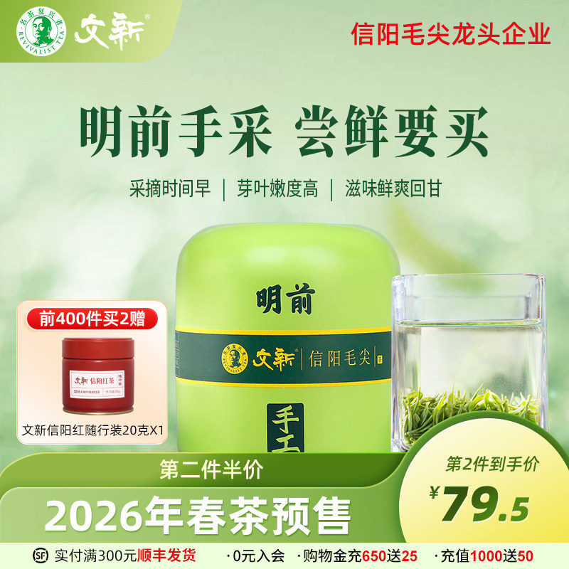 春茶预售文新信阳毛尖绿茶2026新茶茶叶明前特级嫩芽头采手工75g