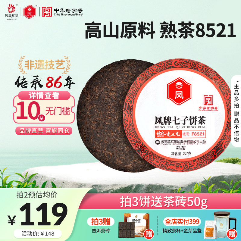 凤牌云南普洱茶熟茶饼临沧普洱茶熟普洱茶叶357g七子饼茶F8521