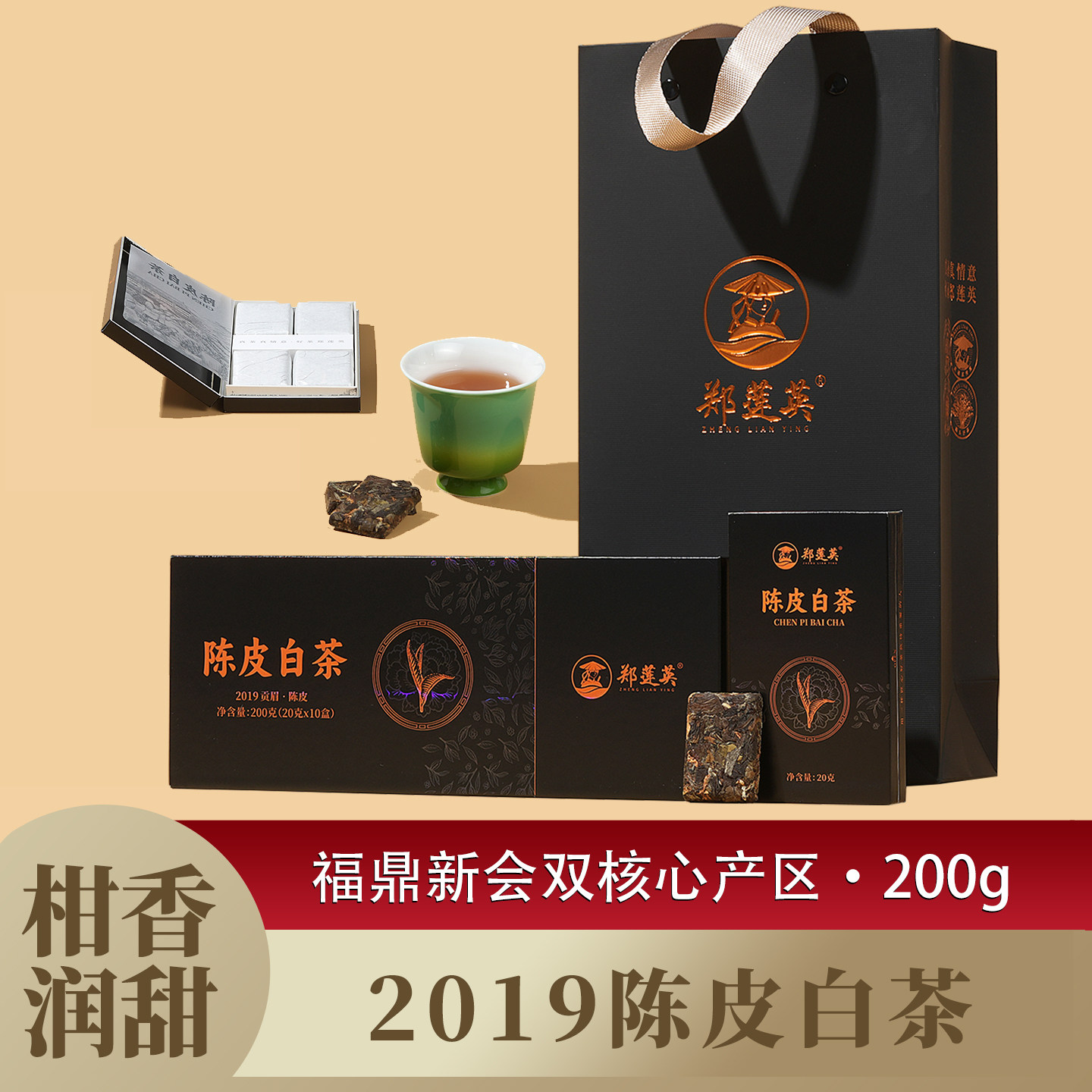 郑莲英陈皮白茶2019年福鼎老白茶新会陈皮小方片茶叶礼盒装200g