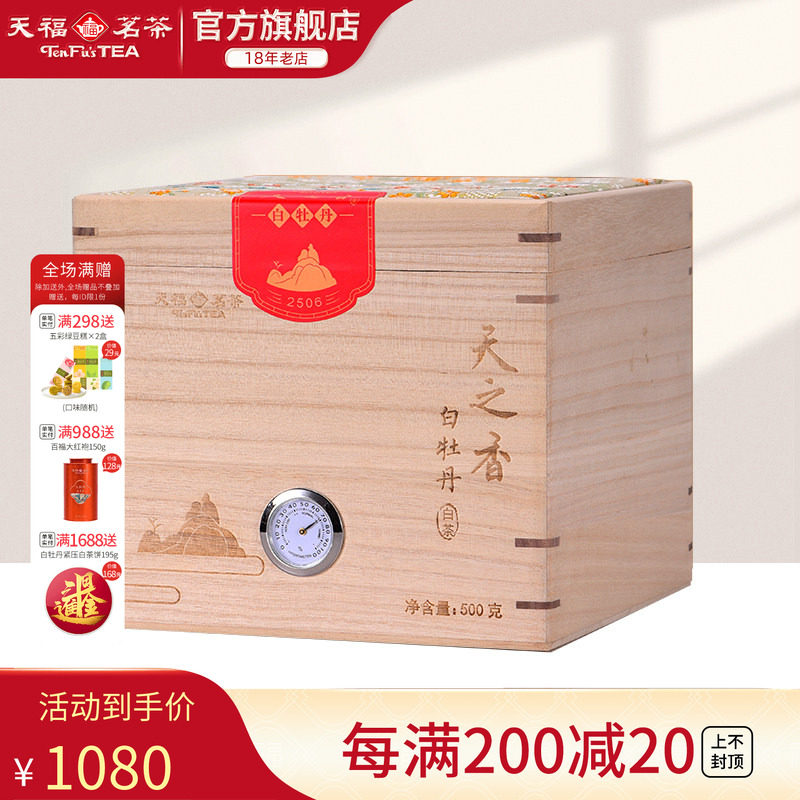 天福茗茶 天之香白牡丹白茶福建福鼎2025茶叶木箱礼盒装500g