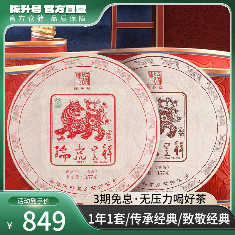 【虎饼套装】2022年陈升号普洱生茶熟茶茶饼普洱茶茶叶饼茶357g*2