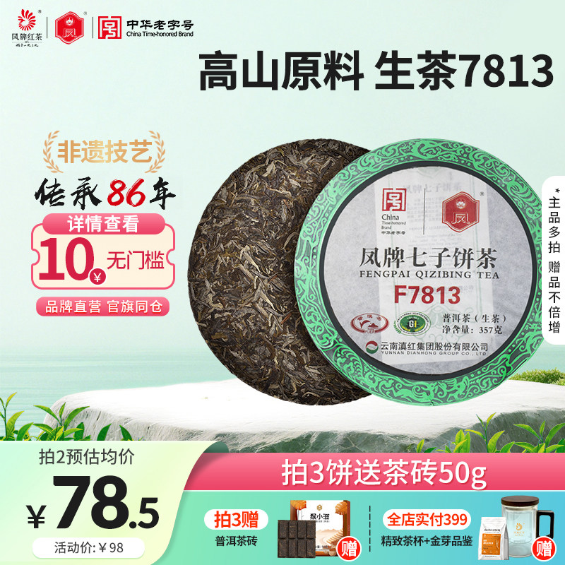 凤牌云南普洱茶生茶饼凤庆临沧F7813七子饼茶357g