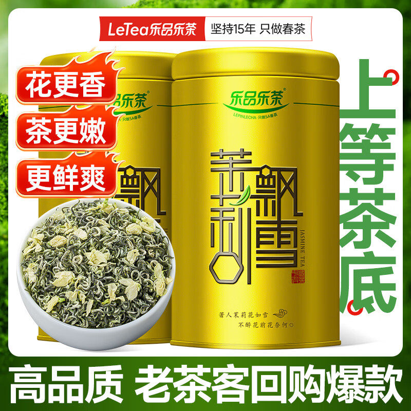 乐品乐茶茉莉飘雪特级茶叶花草茶散装浓香型绿茶新茶口粮罐装250g