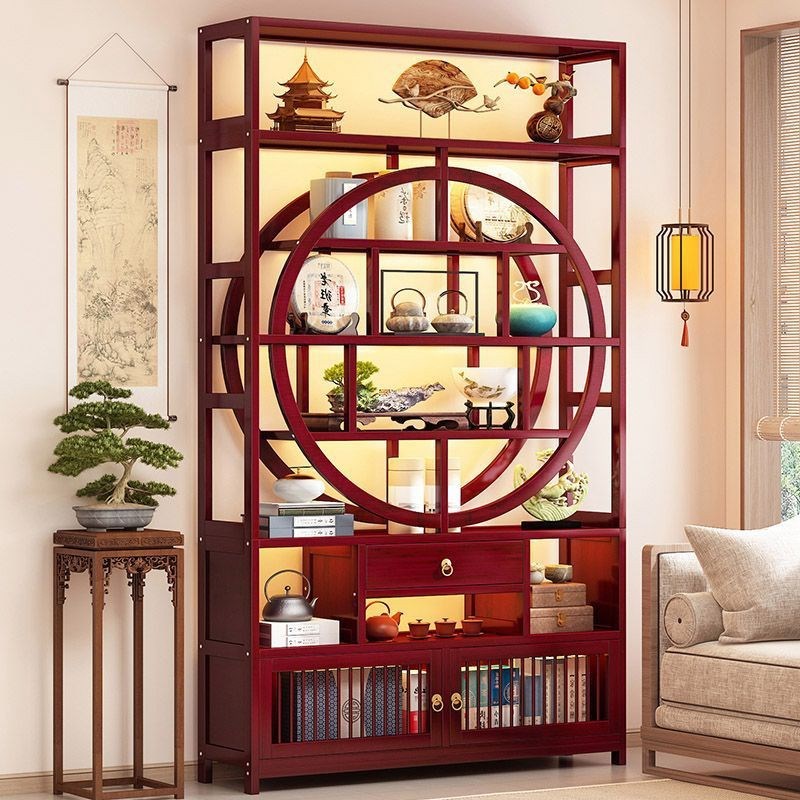 博古架非实木茶叶展示柜茶t架子新中式茶水柜置物架茶室茶具收纳