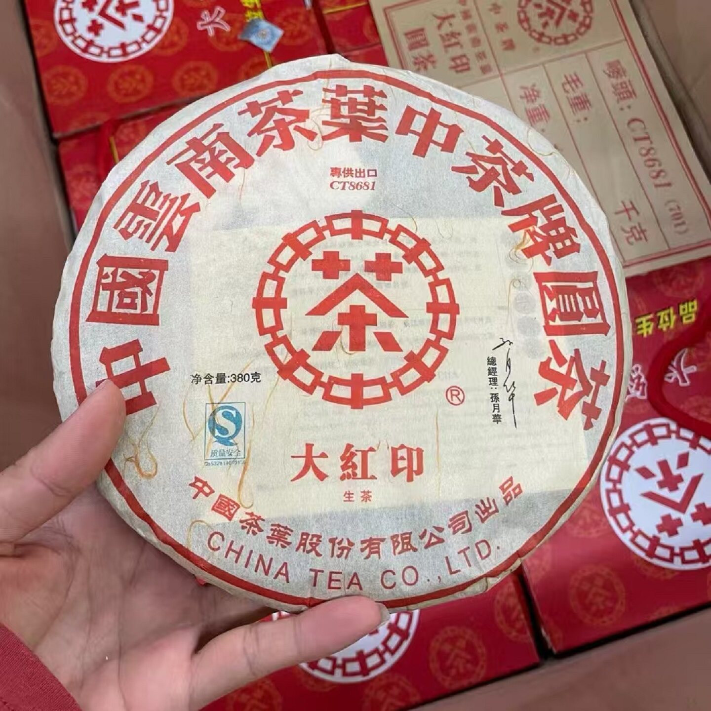 2007年云南普洱茶叶大红印出口CT8681生茶青饼380克烟香浓郁干仓