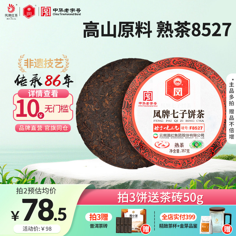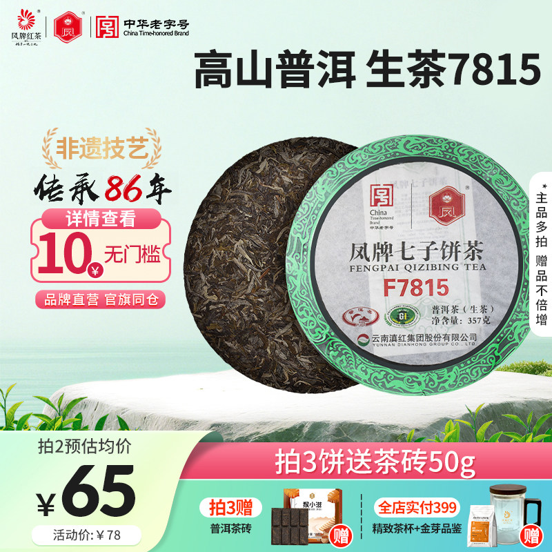 凤牌红茶云南普洱茶生茶饼云南普洱茶叶七子饼茶F7815普洱茶357g