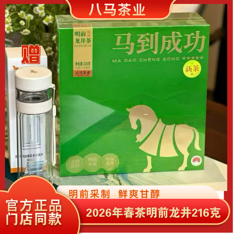 八马茶业茶叶2026年春茶马到成功龙井浙江明前龙井绿茶礼盒装216g