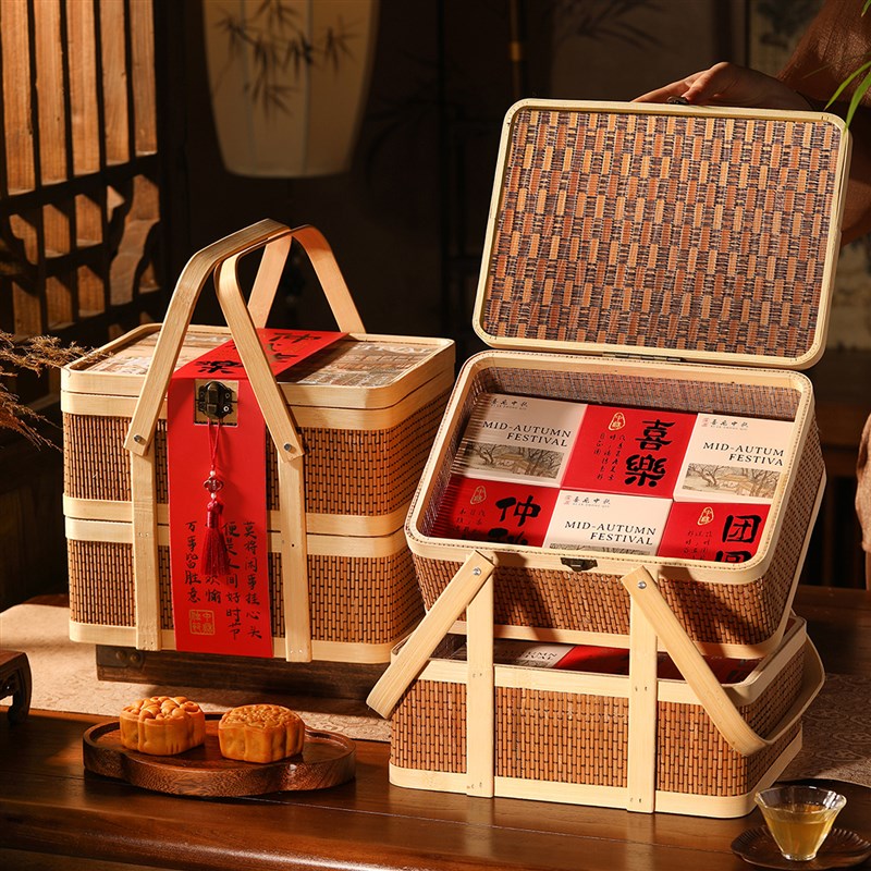 2025中秋节包装盒月饼茶叶礼盒竹篮12粒空盒P高档竹编篮大容量定