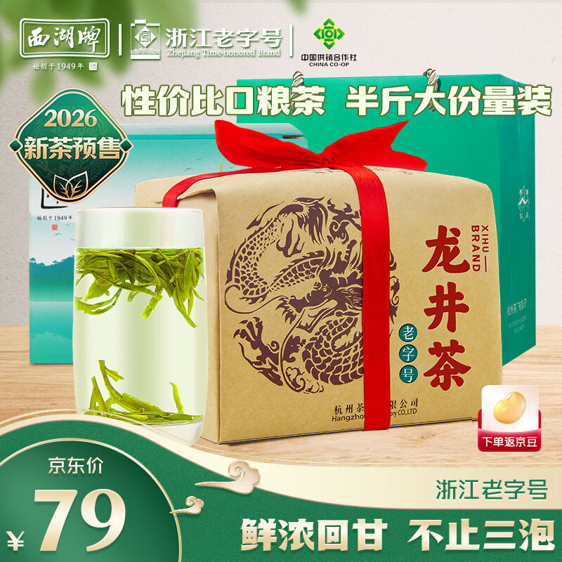 西湖牌2026新茶预售 雨前浓香龙井茶叶传统纸包250g春茶绿茶 杭州茶厂