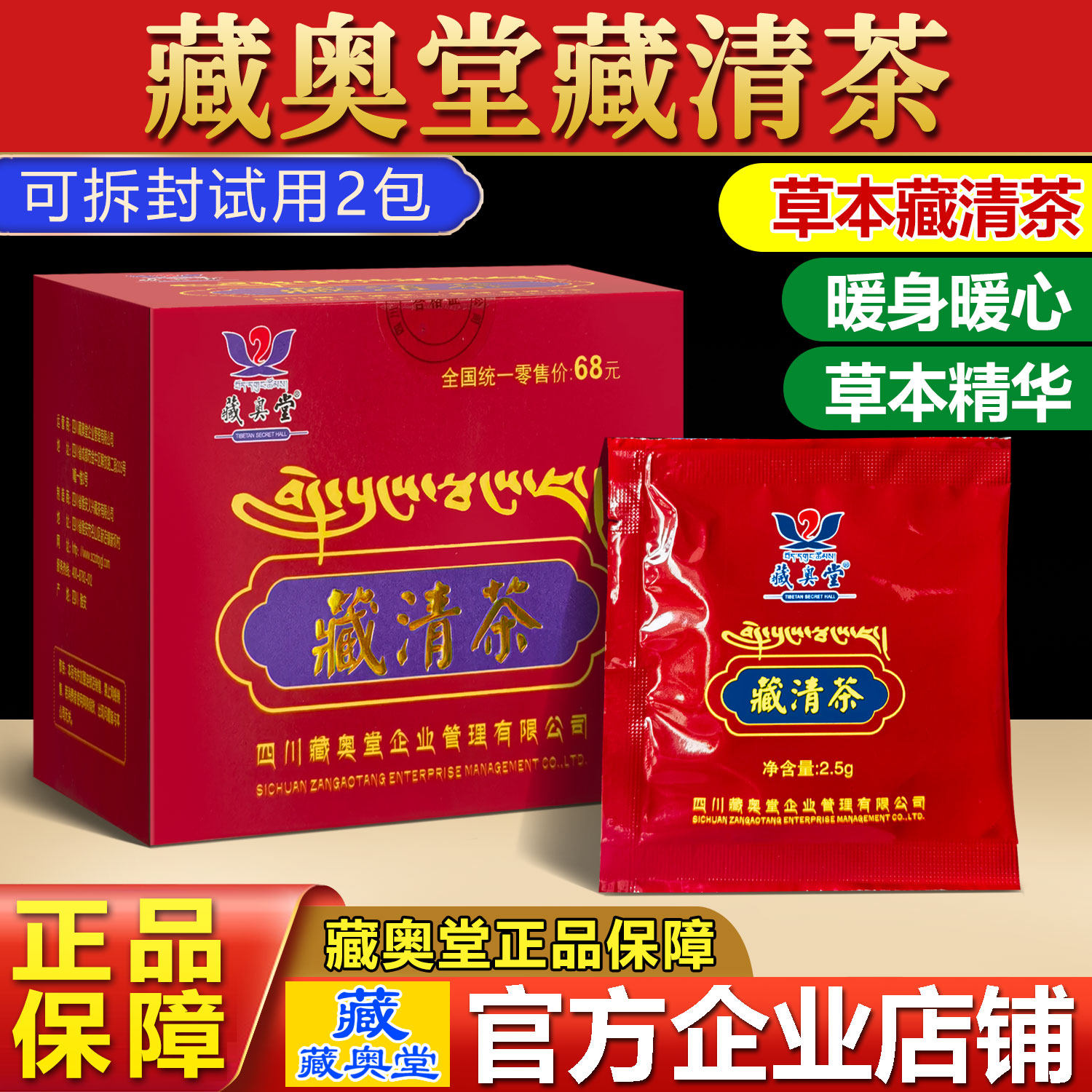 四川藏奥堂藏清茶官方正品一盒18包袋泡茶包茶叶八珍袋泡茶叶藏茶