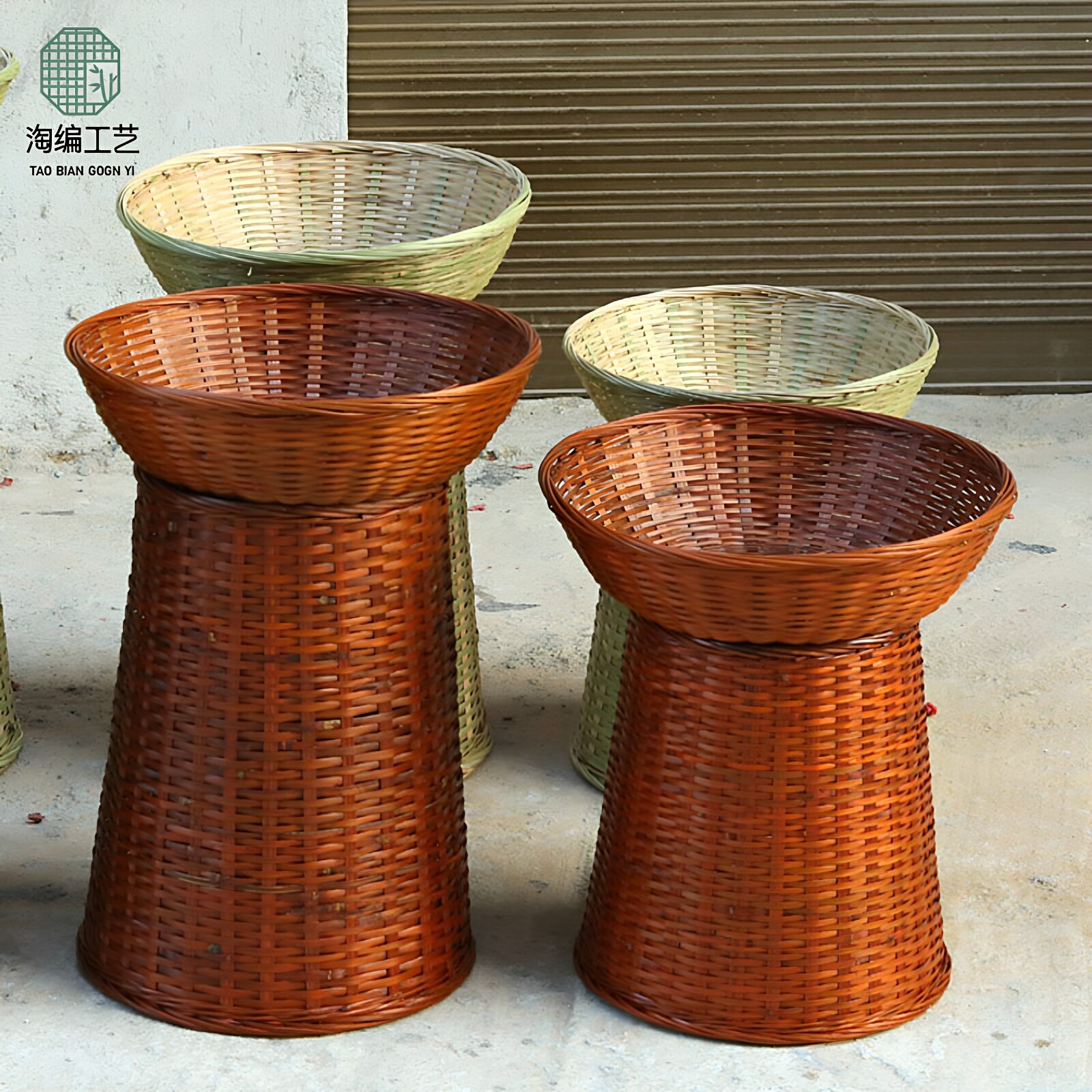 竹编蔬菜摆放筐茶叶篓蔬果堆头篮水果展示筐超市蔬菜陈列筐收纳筐