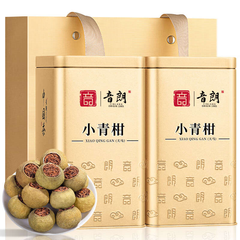 音朗茶叶普洱茶 新会天马小青柑正宗生晒勐海熟普中秋礼盒2罐共400g