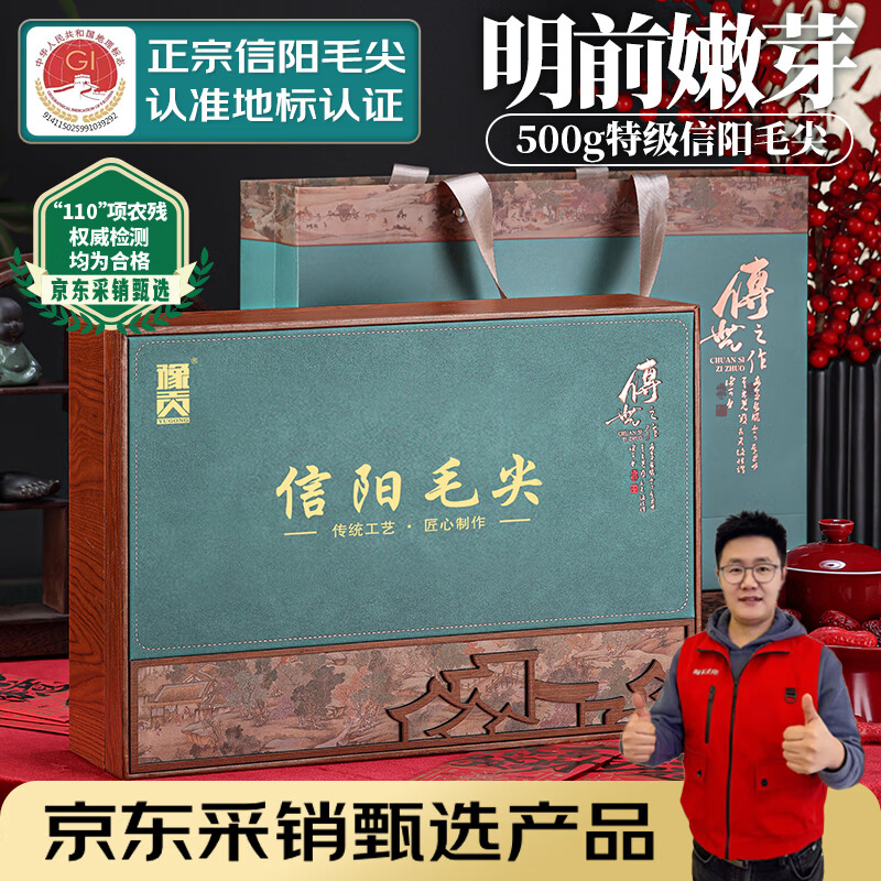 五云村2025新茶信阳毛尖500g茶叶绿茶特级春茶2罐共1斤自己喝带礼袋盒