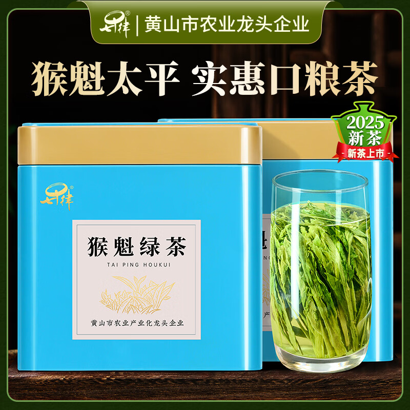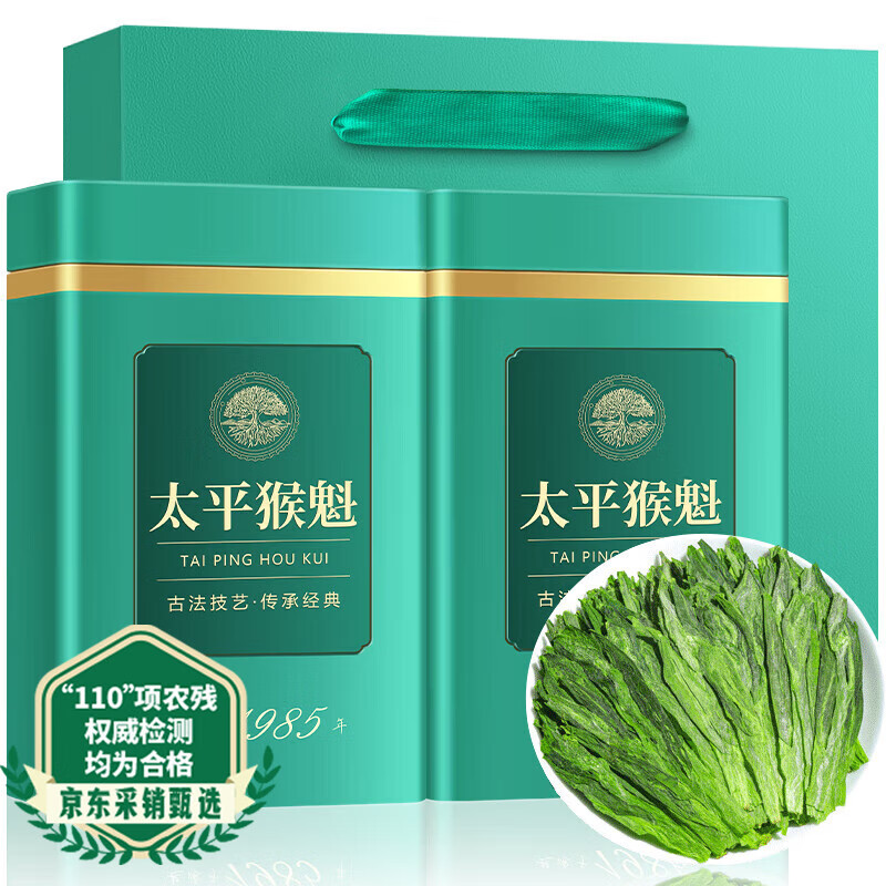 音朗 茶叶绿茶 雨前特级太平猴魁 2025新茶手工捏尖茶叶礼盒2罐共250g