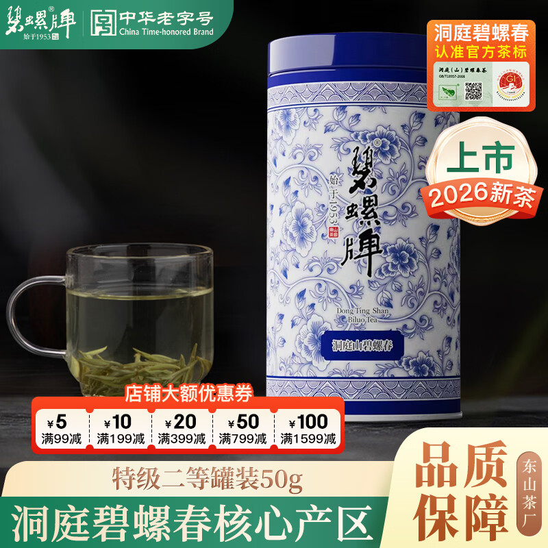 碧螺2026年春茶绿茶青花苏州洞庭碧螺春特级二等50g明前新茶罐装