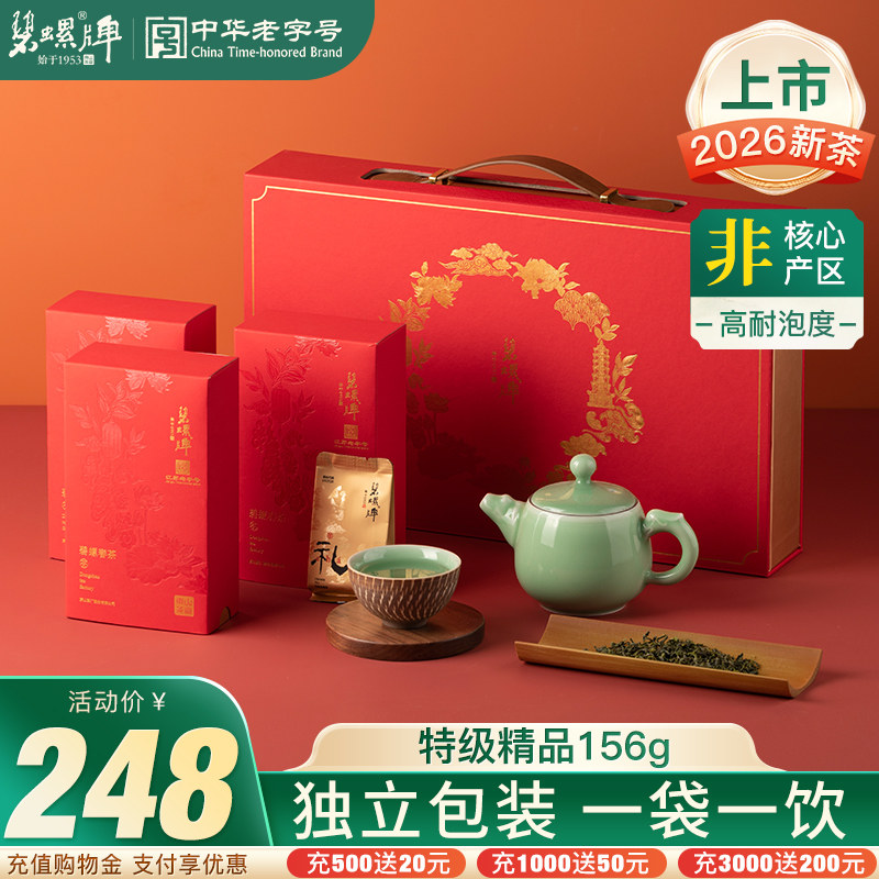 2026新茶苏州碧螺春特级精品绿茶洞庭茶叶经济实惠送人礼盒装156g