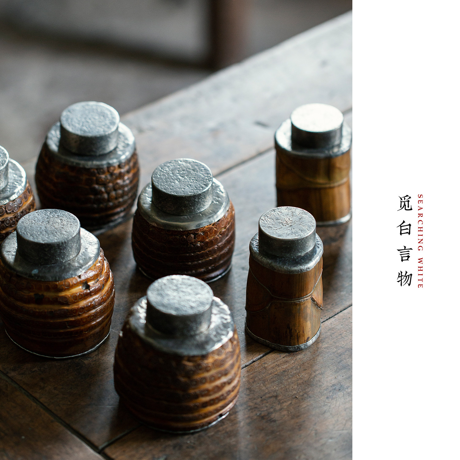 觅白老竹纯锡茶叶罐天然竹根密封茶仓名家纯手工文玩复古龟甲虫噬