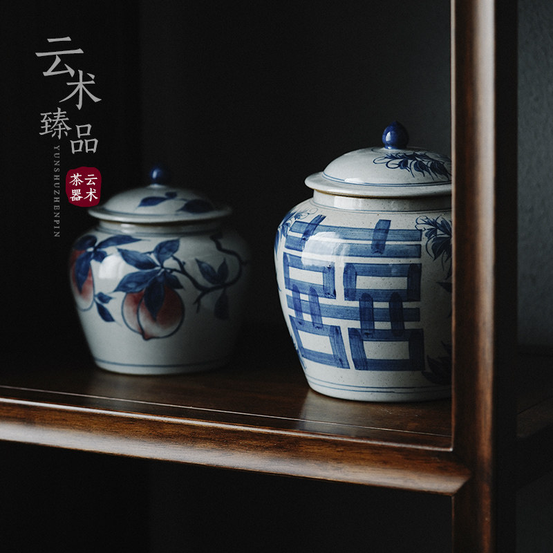 青花瓷手绘装茶叶罐将军罐 景德镇纯手工大号陶瓷家用密封储物罐