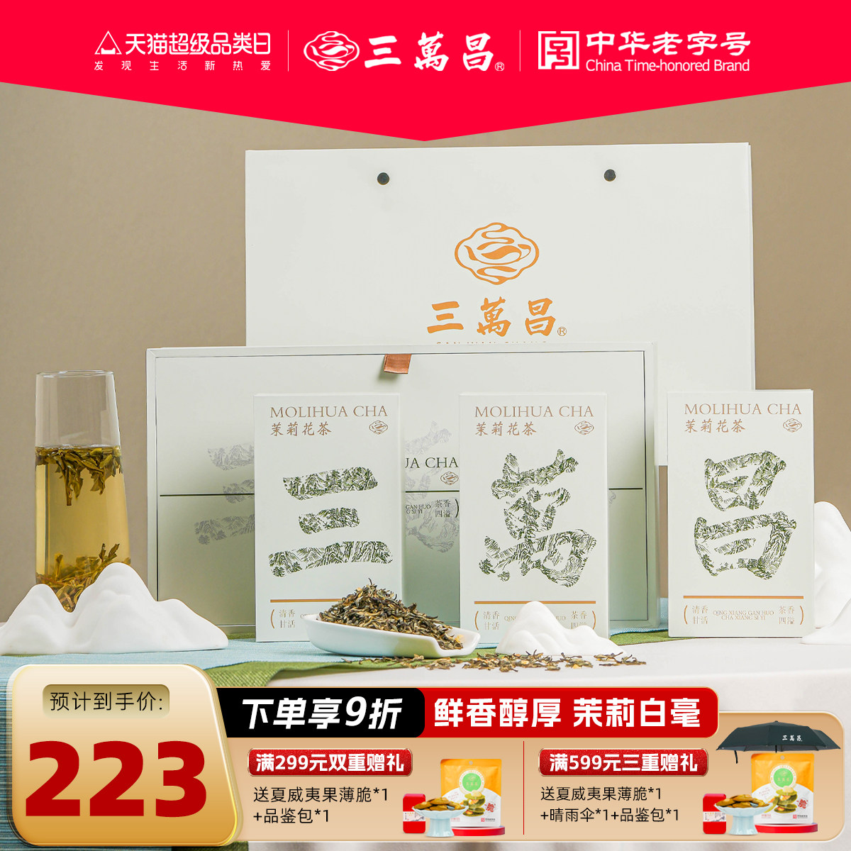 三万昌茉莉白毫花茶茶叶礼盒装2025新茶浓香花草茶送礼送长辈240g