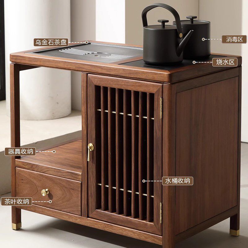 新中式实木茶水柜乌金木茶边柜办公室置物柜茶叶柜茶盘烧水壶一体