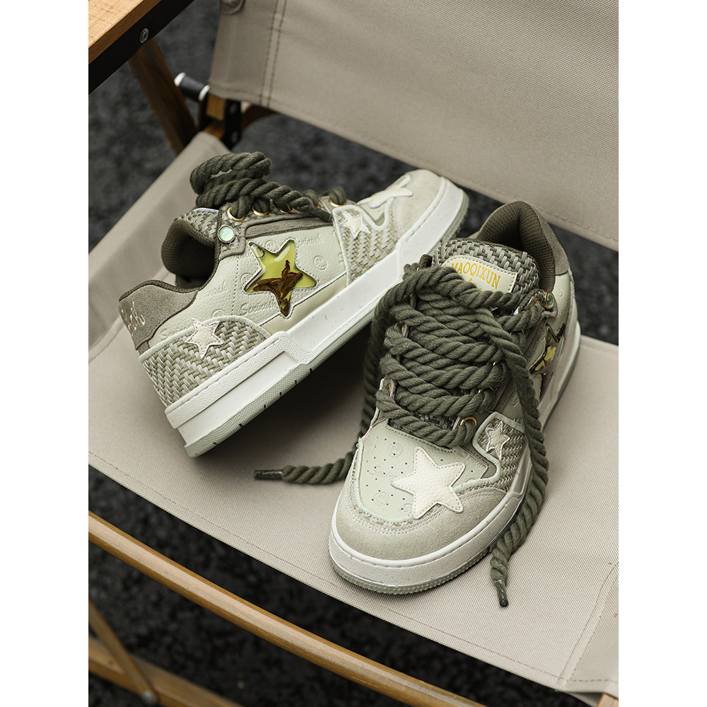 西湖龙井联名星星鞋子男鞋春秋款2026新款情侣潮牌百搭茶叶板鞋女