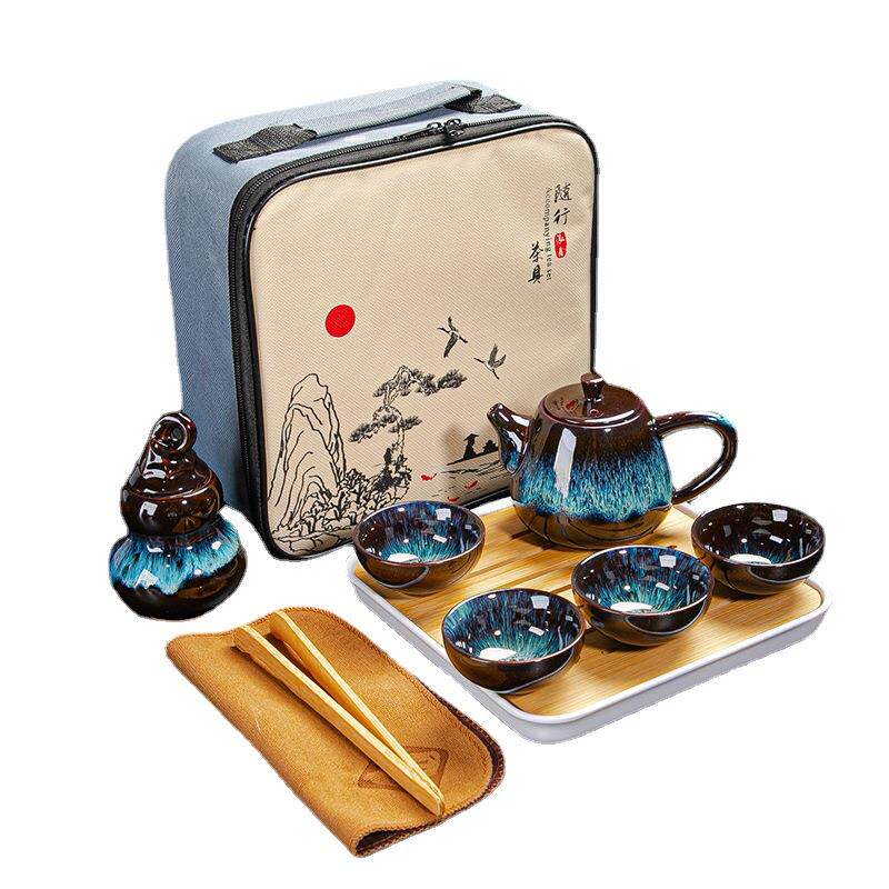 初璞陶瓷旅行茶具套装窑变一壶四杯带茶叶罐干泡盘便携户外茶具