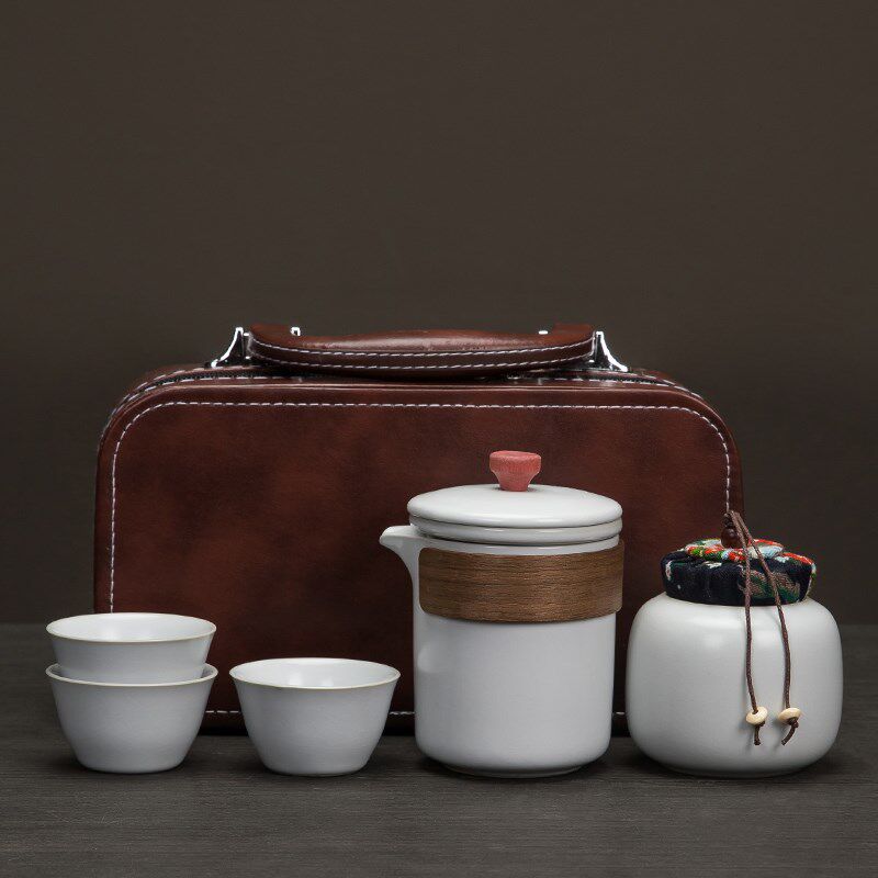 汝窑旅行茶具套装便携包快客杯带过滤户外陶瓷茶叶罐公司礼品定制