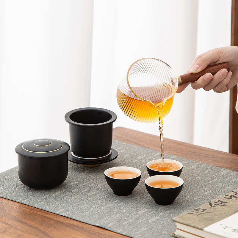 户外黑陶旅行功夫小茶具套装一壶四杯茶盘茶叶罐简约便携式伴手礼