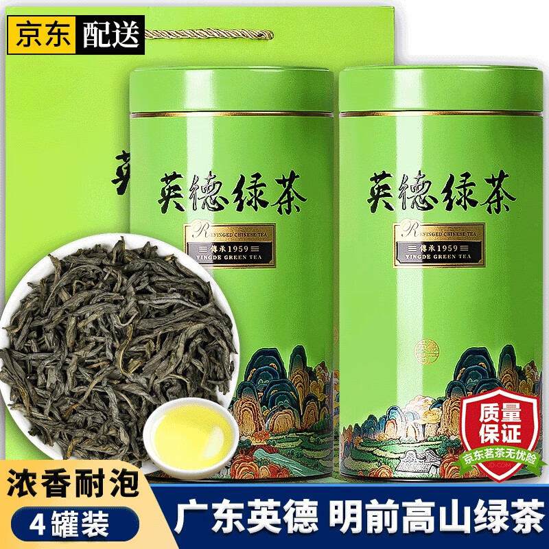 亿公子广东英德绿茶 2025年新茶炒青嫩芽高山云雾茶浓香老树茶叶自己喝 【4罐装+礼盒】共1000克
