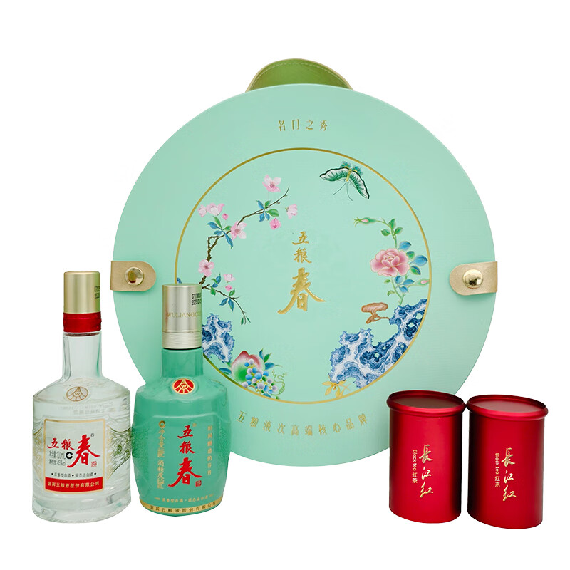 林湖飘雪【详情页领优惠券】春色满园礼盒长江红+五粮春小酒礼盒红茶茶叶