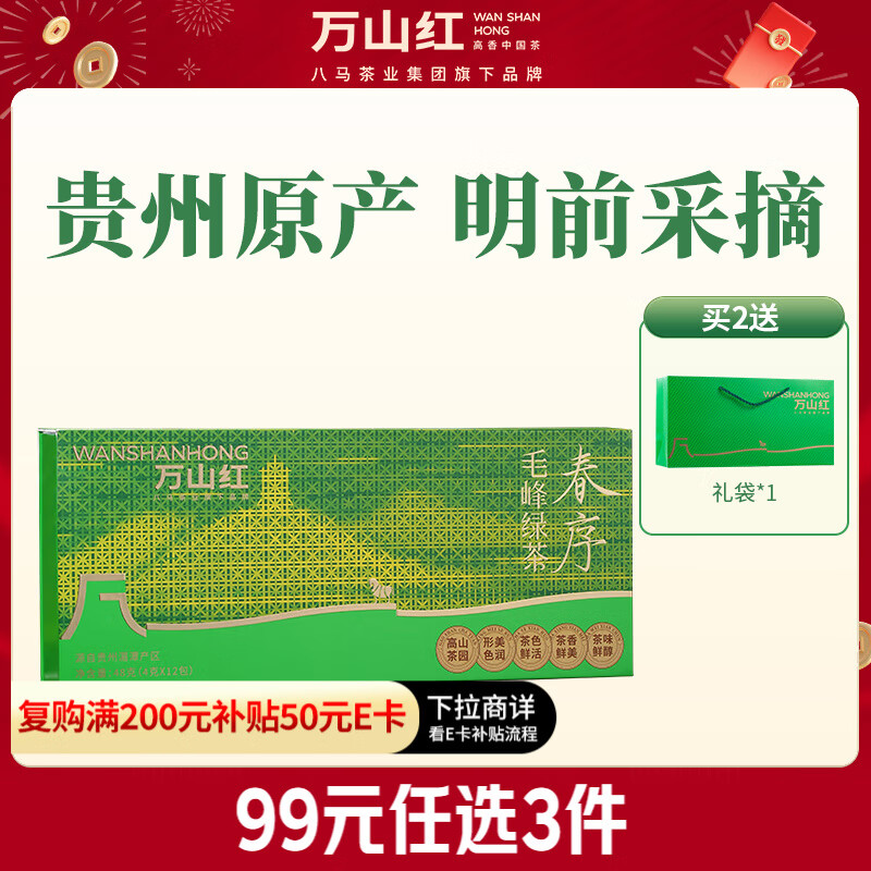 万山红绿茶 春序贵州黄山毛峰明前48g 2025年新茶礼盒装茶叶闺蜜女友
