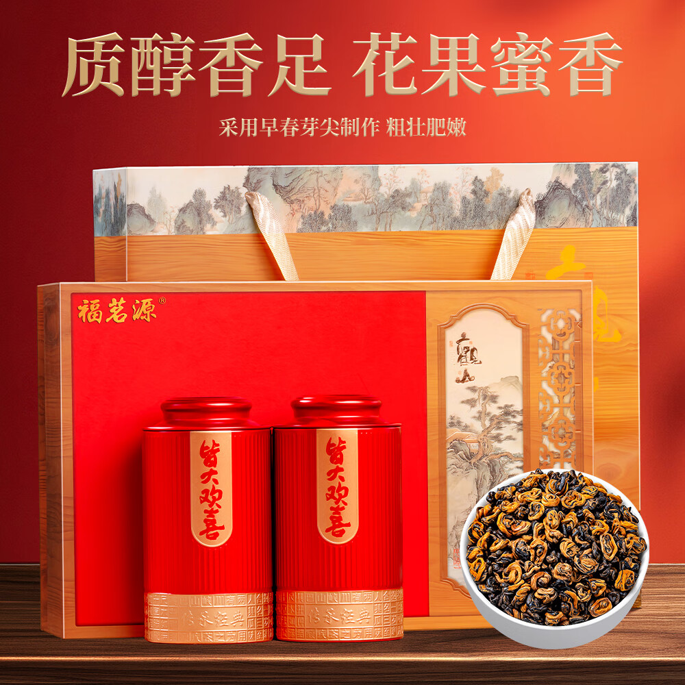 福茗源茶叶 滇红金螺红茶2025新茶特级云南凤庆金丝金芽中秋礼盒装360g