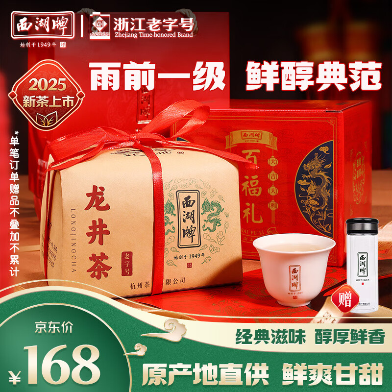 西湖牌2025新茶叶 雨前一级龙井茶叶传统纸包250g春茶绿茶自己喝送礼