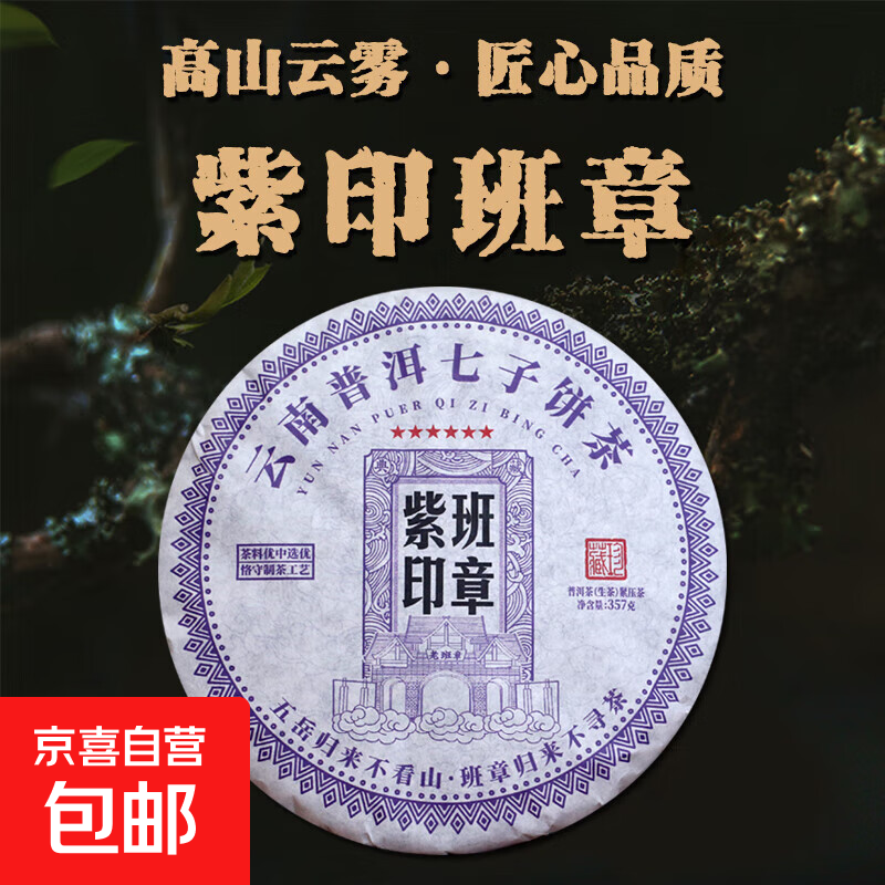 【紫印班章中秋节礼品】云南班章五寨普洱七子饼茶叶生茶357克/饼 7饼共2499克