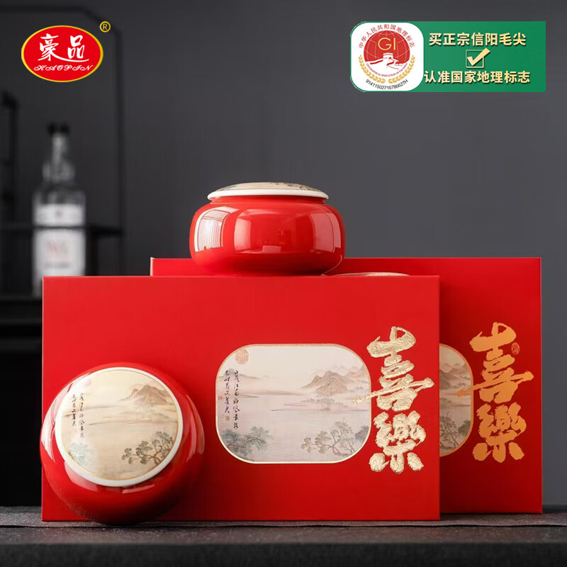豪品茶叶信阳毛尖绿茶2025明前嫩芽春茶新茶送礼高档瓷罐礼盒250g