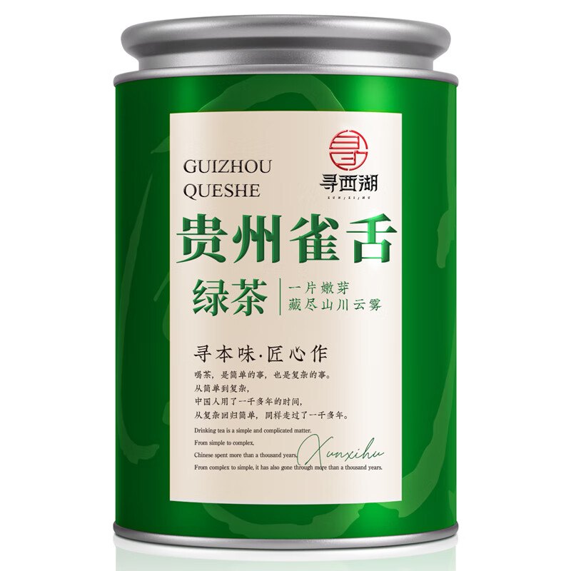 寻西湖茶叶 绿茶雀舌茶 特级明前湄潭翠芽嫩芽浓香型茶叶罐装50g
