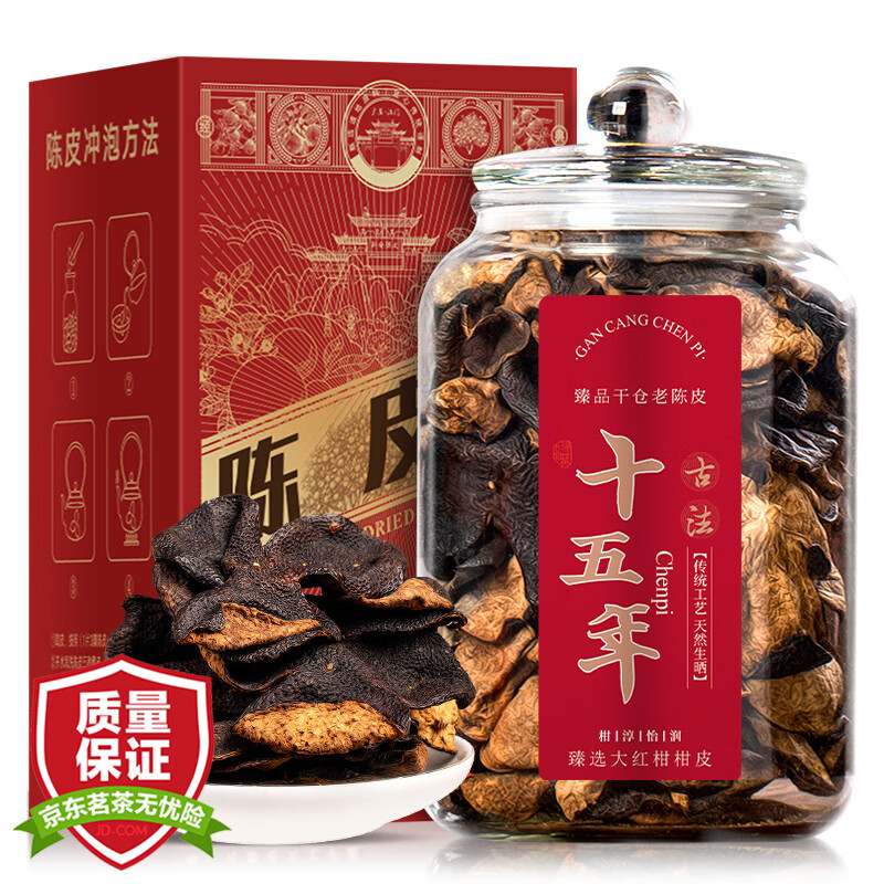 至鼎 十五年新会老陈皮 大红皮生晒干泡陈皮茶叶中秋国庆送礼礼盒250g