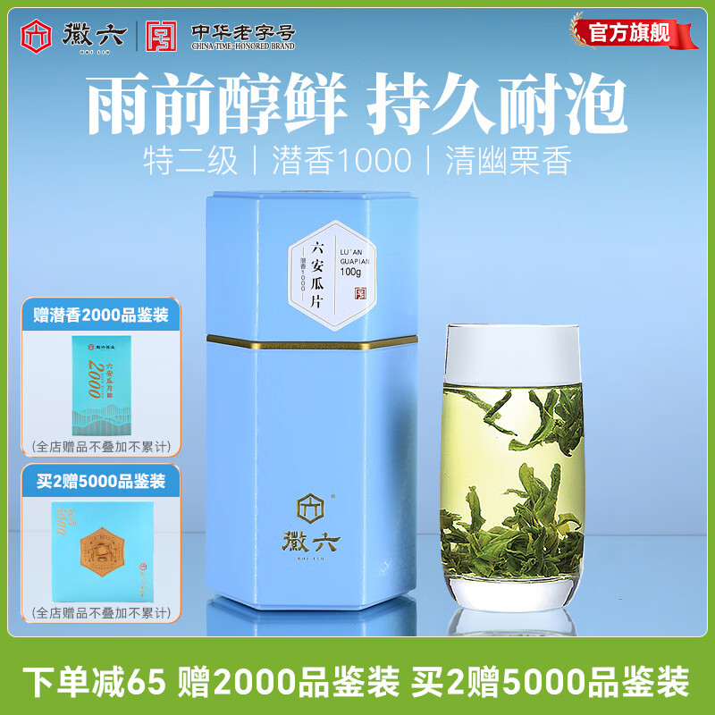徽六绿茶潜香1000六安瓜片茶叶清香特二级100g 2025年新茶雨前自己喝