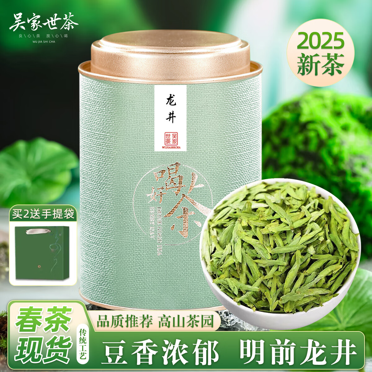 吴家世茶特级龙井茶2025新茶明前绿茶豆香型正宗浙江原产茶叶铁罐装送礼 100克罐装