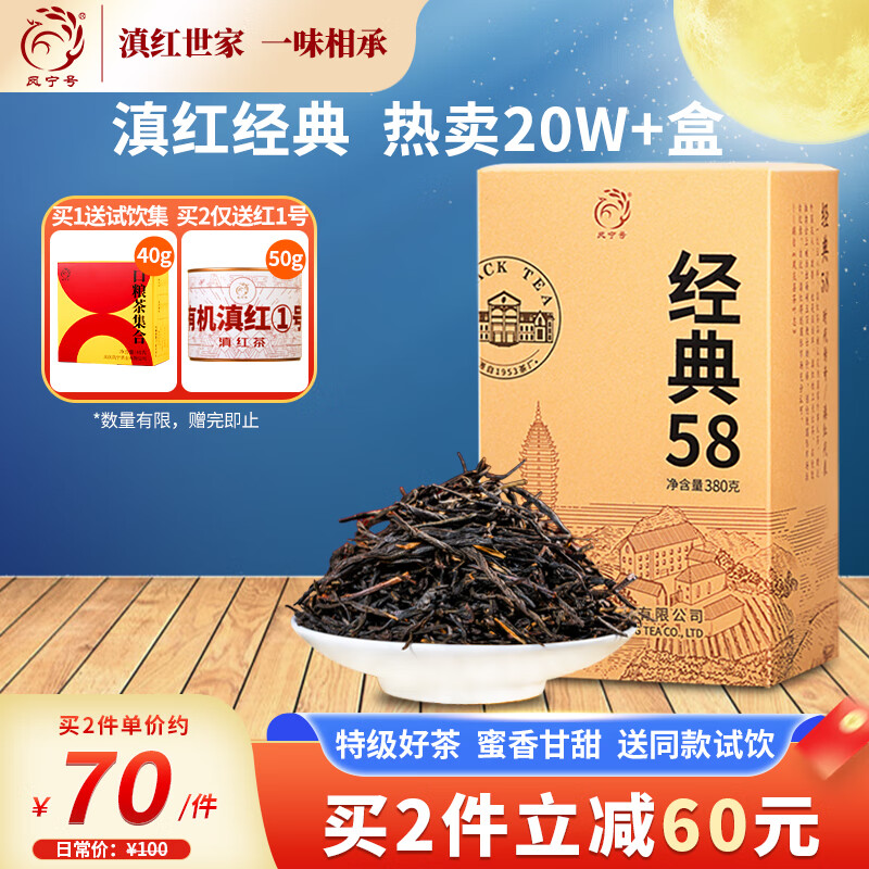 凤宁号红茶经典58特级凤庆滇红茶云南滇红金针茶2025新茶口粮茶叶自己喝 单盒装380g
