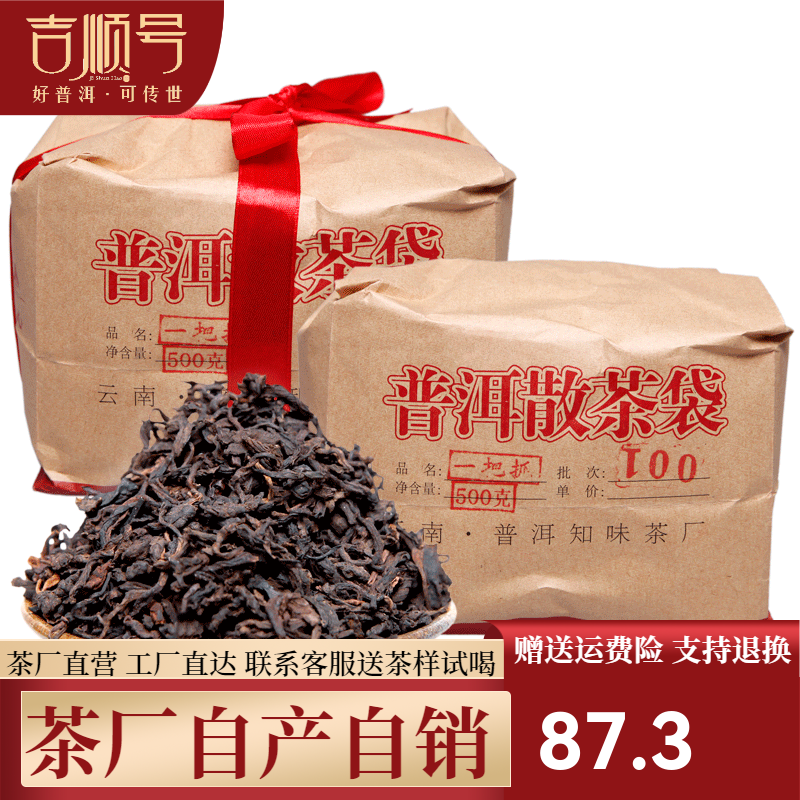 吉顺号茶叶 一把抓普洱茶熟茶散茶陈年老茶500克 普洱茶老茶 老熟茶