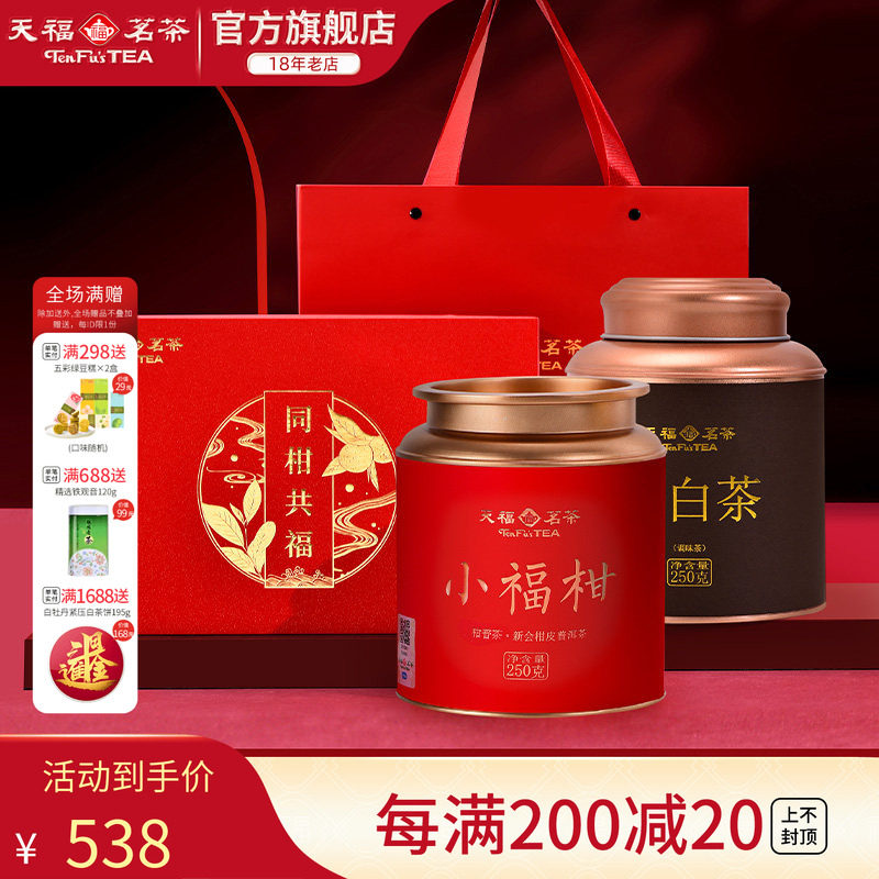 天福茗茶同柑共福 新会小青柑普洱茶柑白茶贡眉礼盒装茶叶500g