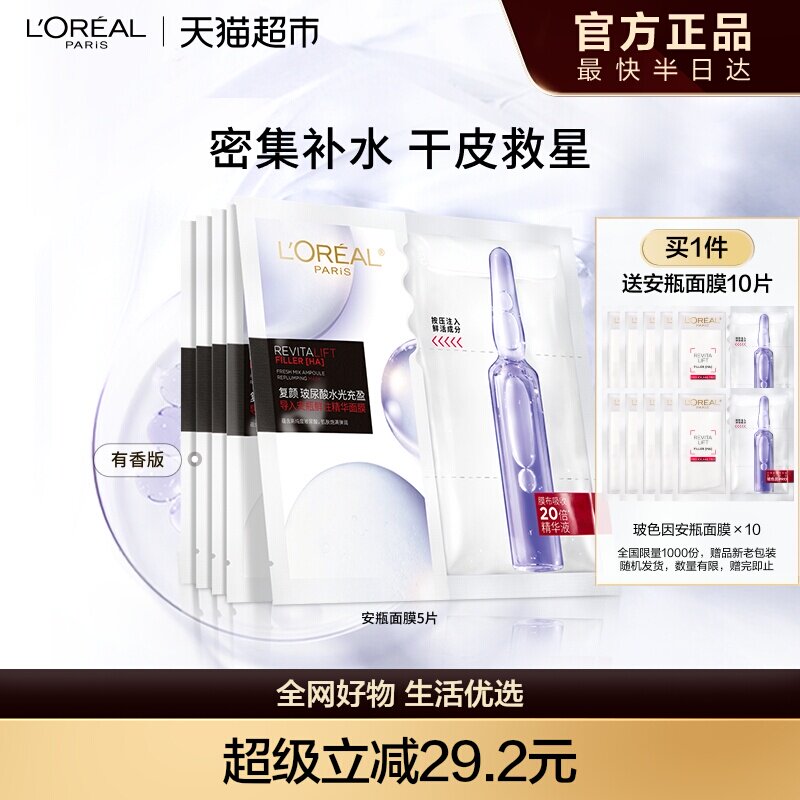 欧莱雅安瓶面膜玻尿酸提亮肤色补水保湿淡化细纹精华女
