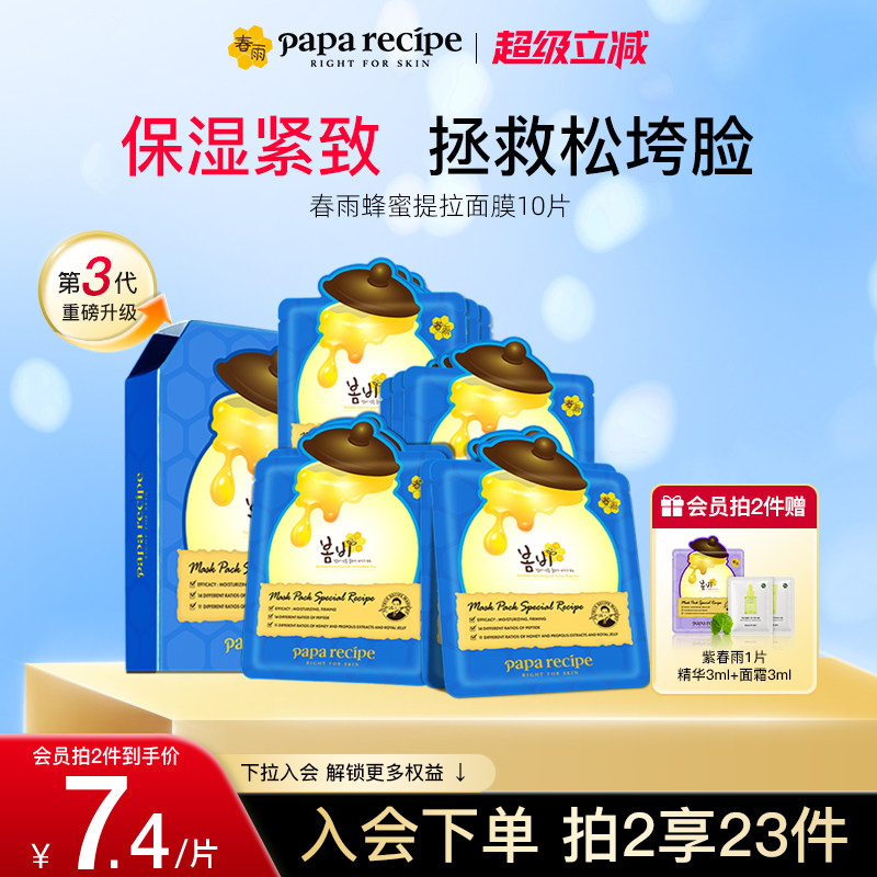 【会员内购会】韩国蓝春雨蜂蜜蓝铜胜肽胶原蛋白面膜紧致补水官方