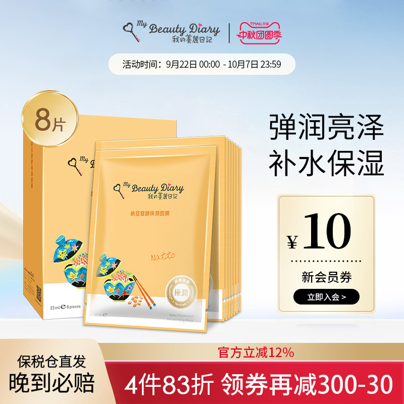 我的美丽日记官方正品纳豆面膜补水锁水提亮提拉男生女士台湾省