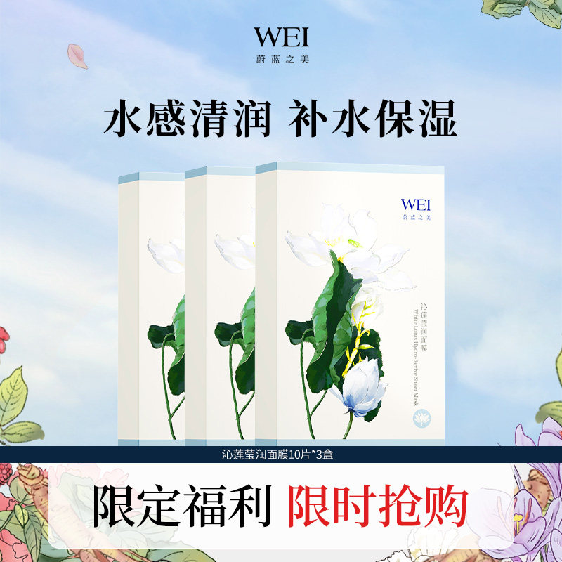 蔚蓝之美WEI蔚蓝之美沁莲莹润面膜三盒装保湿玻尿酸贴片滋润肤