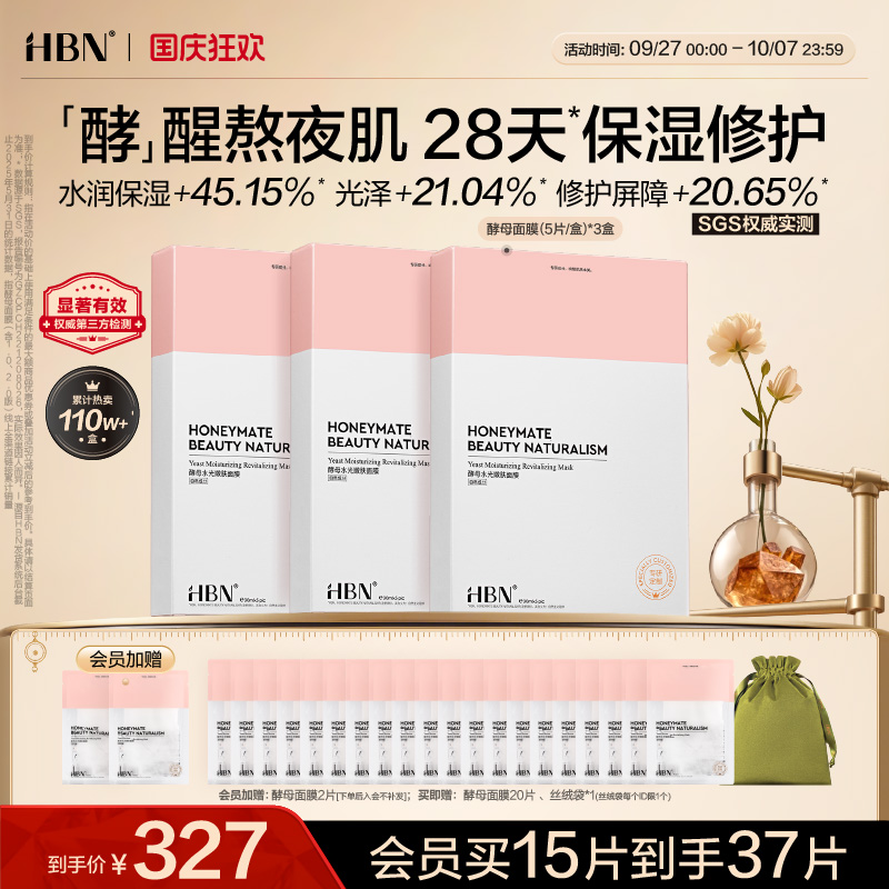 HBN酵母面膜2.0玻尿酸补水保湿舒缓修护熬夜焕亮改善暗沉敏感肌