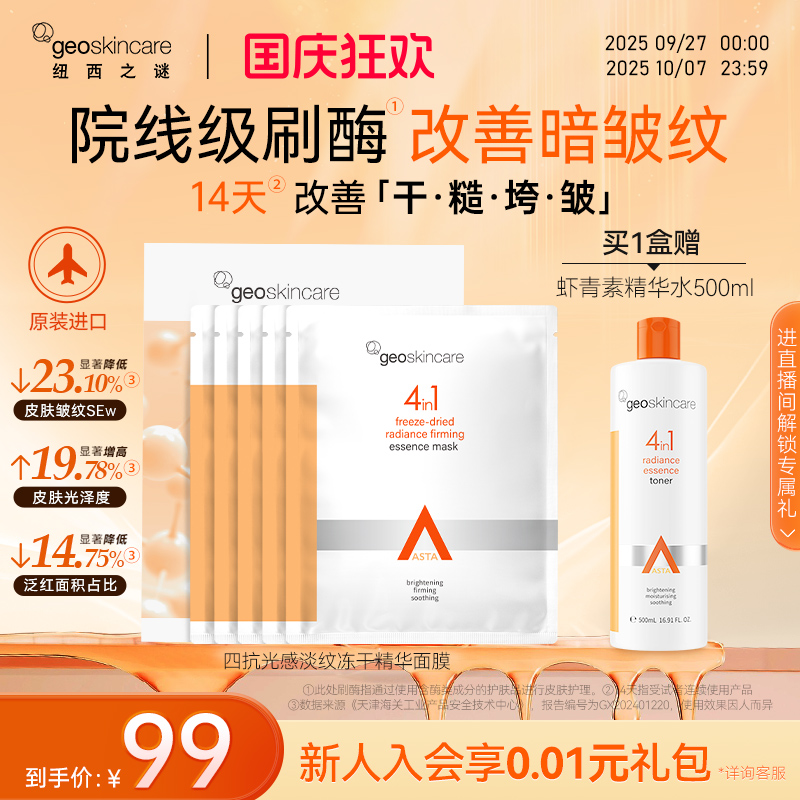 纽西之谜虾青素冻干精华面膜淡纹去黄提亮保湿抗皱紧致舒缓隔离
